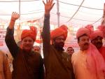 The Union Minister for Minority Affairs, Shri Mukhtar Abbas Naqvi at the Progress Panchayat and inauguration - foundation stone laying of various development projects, at Kishangarh Bas, Alwar, Rajasthan on December 17, 2017.
